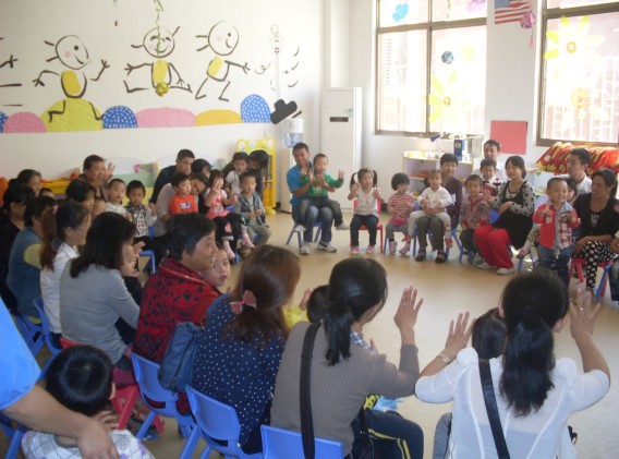 最后,老師們與家長(zhǎng)、寶寶們?cè)诟靼嘟淌覂?nèi),開(kāi)展親子互動(dòng)節(jié)目,氛圍融洽和諧。