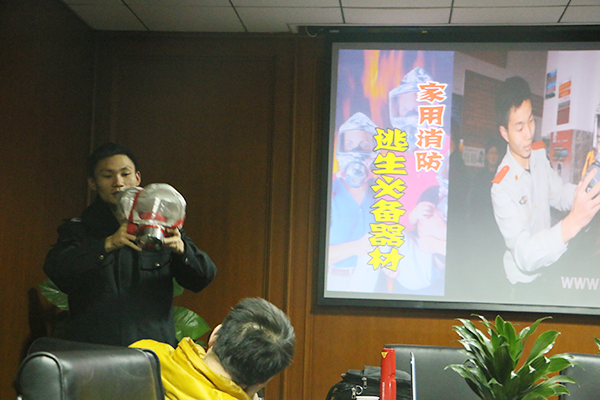 消防員通過播放消防短片及PPT,詳細講解了滅火、防火、逃生三個方面的消防知識,并對消防器材如防毒面具、滅火器等的功能及使用方法進行了步驟演示,對大家提出的各類消防問題也進行了細致的解答。此次消防安全知識培訓讓我們受益匪淺,并進一步擰緊了我們思想上的“安全螺絲”,不僅學習了各類火災的消防知識、掌握了應對的必備技能,自身應對火災的能力還得到實質性提升。